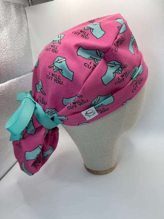 I Will Cut You Surgery Scrub Cap (Pink) - Satin Lining Available Multiple Styles