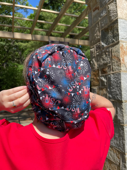 • USA Fireworks Scrub Cap - Satin Lining Available - Multiple Styles