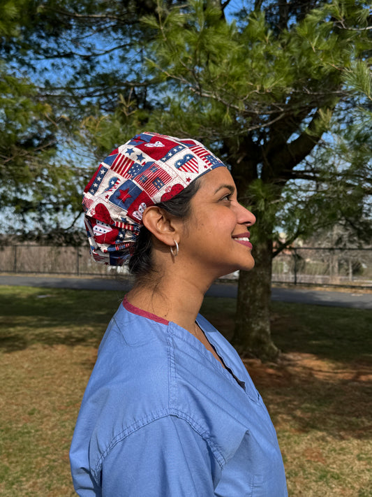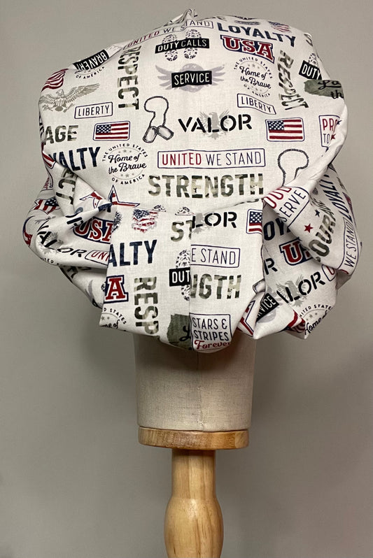 Patriotic Military Scrub Cap - Satin Lining Available - Multiple Styles