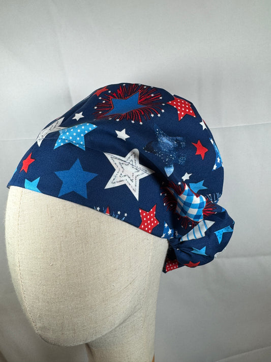 Patriotic Stars Scrub Cap - Satin Lining Available - Multiple Styles