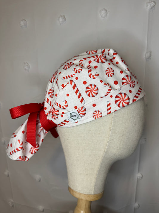 Candy Canes & Mints on White Scrub Cap - Multiple Styles