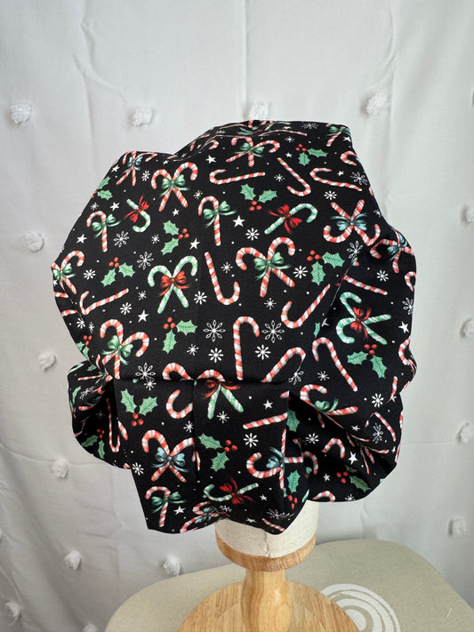 Candy Canes on Black Scrub Cap - Multiple Styles
