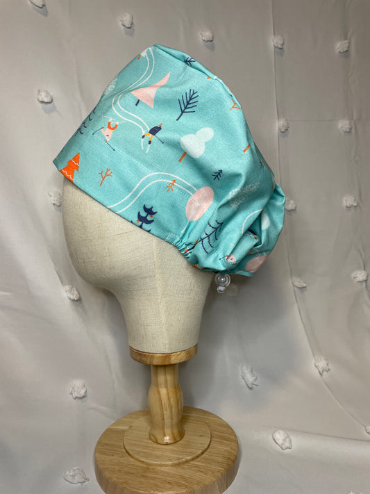 Skiers in Aqua Scrub Cap - Satin Lining Available - Multiple Styles