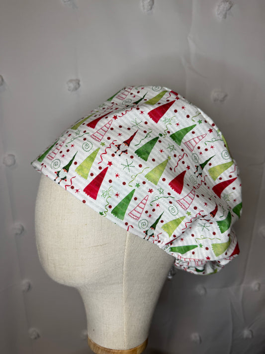 Red & Green Triangle Trees with Gnomes Scrub Cap - Multiple Styles