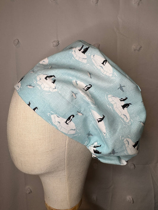 Penguins on Ice Scrub Cap - Satin Lining Available.- Multiple Styles