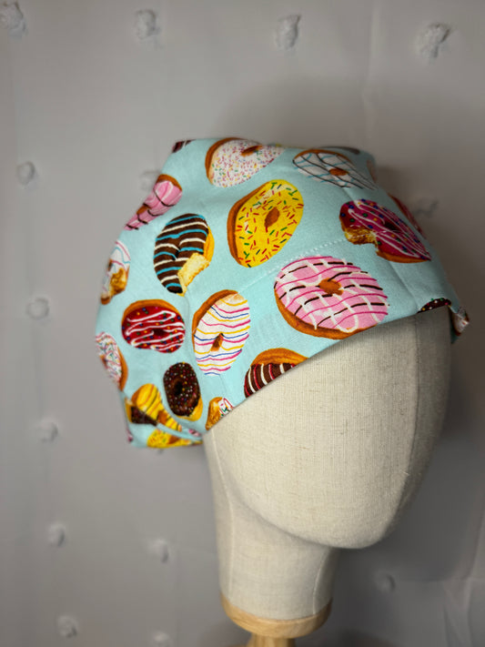 Donuts on Blue Scrub Cap - Satin Lining Available - Multiple Styles