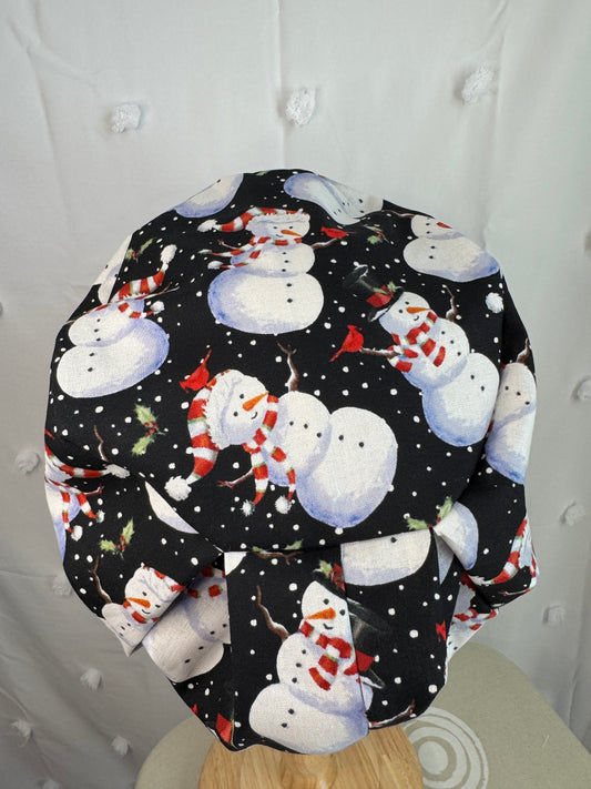 Snowmen on Black Scrub Cap - Satin Lining Available - Multiple Styles