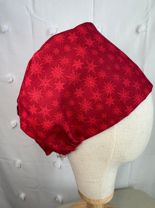 Snowflakes on Red Scrub Cap - Satin Lining Available - Multiple Styles