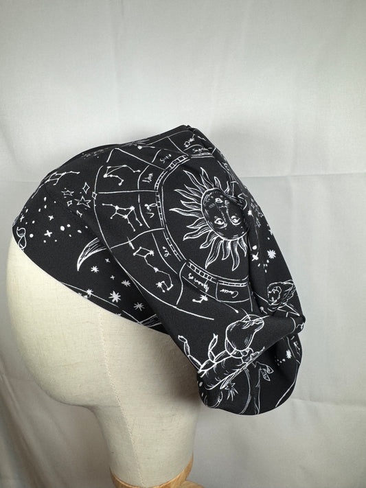 Black Astrology Silky Smooth Chiffon Stretch Scrub Cap - European Style