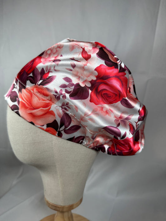 Roses Silky Satin Charmeuse Scrub Cap - European Style