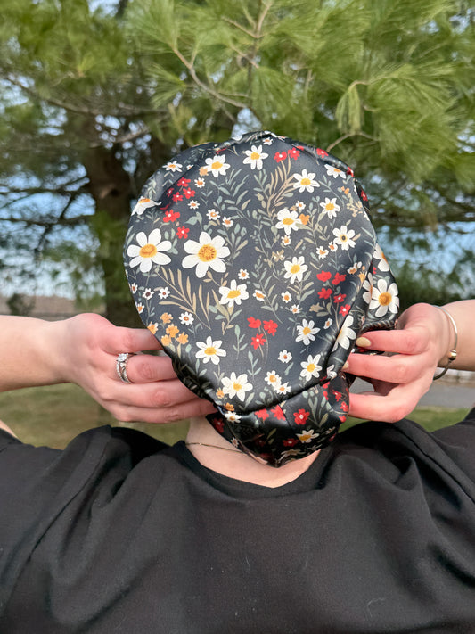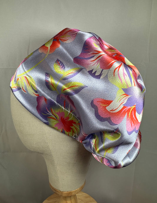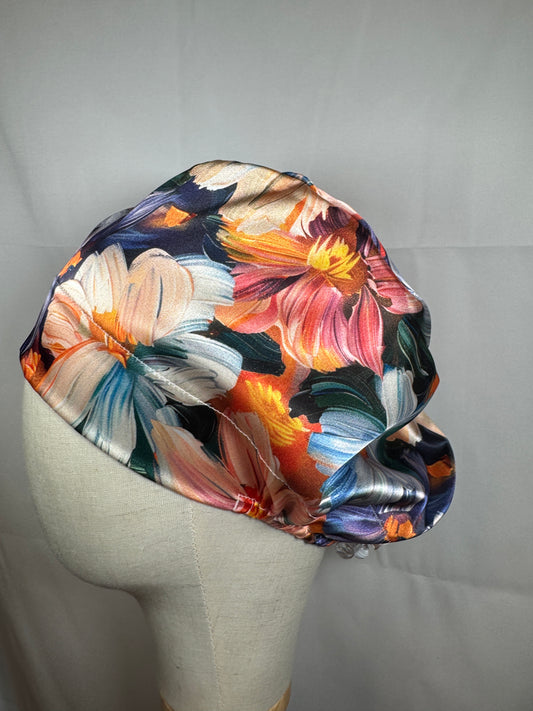 Bright Petals Silky Satin Charmeuse Scrub Cap - European Style