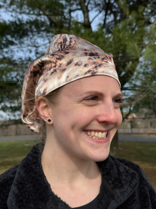 Blurred Animal Print Silky Textured Satin Charmeuse Scrub Cap - European Style