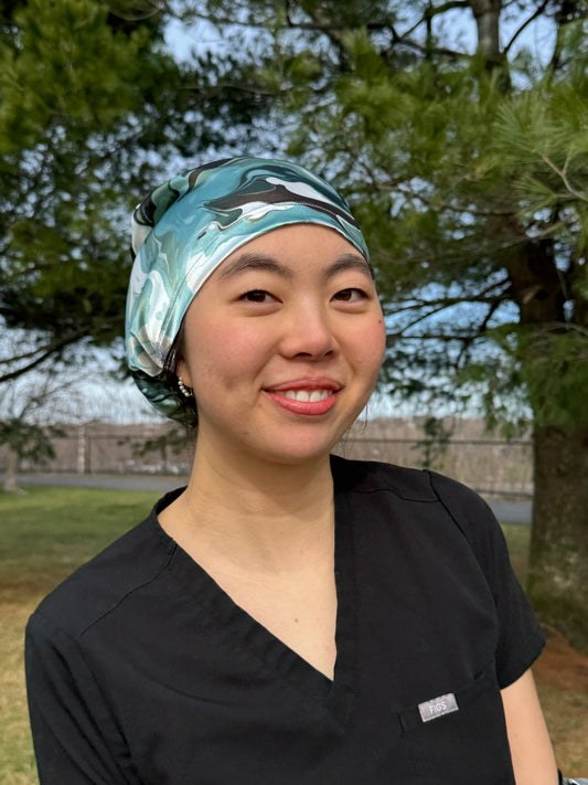 Green Oil Silky Satin Charmeuse Scrub Cap - European Style