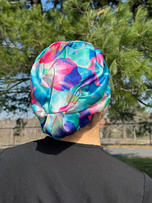 Painted Floral Silky Satin Charmeuse Scrub Cap - European Style