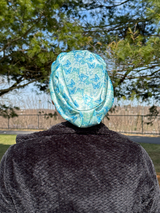 Light Blue Butterflies Silky Satin Charmeuse Scrub Cap - European Style