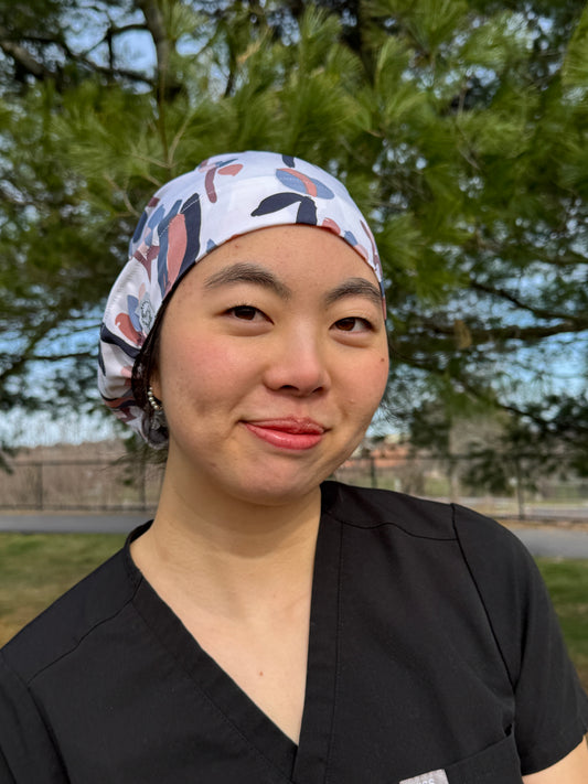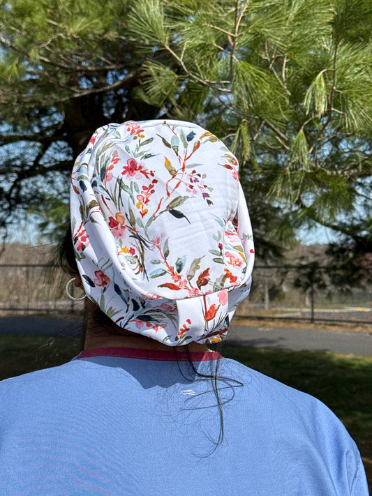 Light Floral Silky Smooth Chiffon Stretch Scrub Caps - European Style