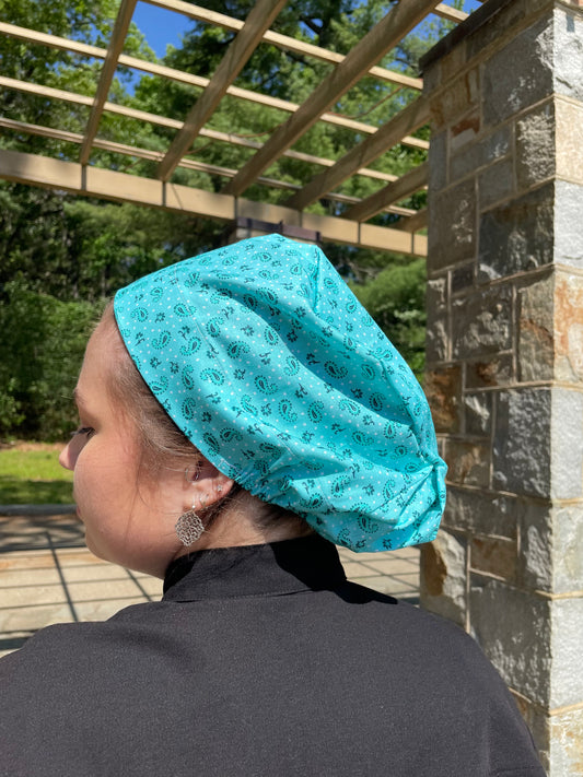 Aqua and Peach Floral Scrub Cap -Satin Lining Available - Multiple Styles