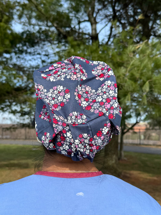 Anatomical Hearts with Floral Scrub Cap - Satin Lining Available - Multiple Styles