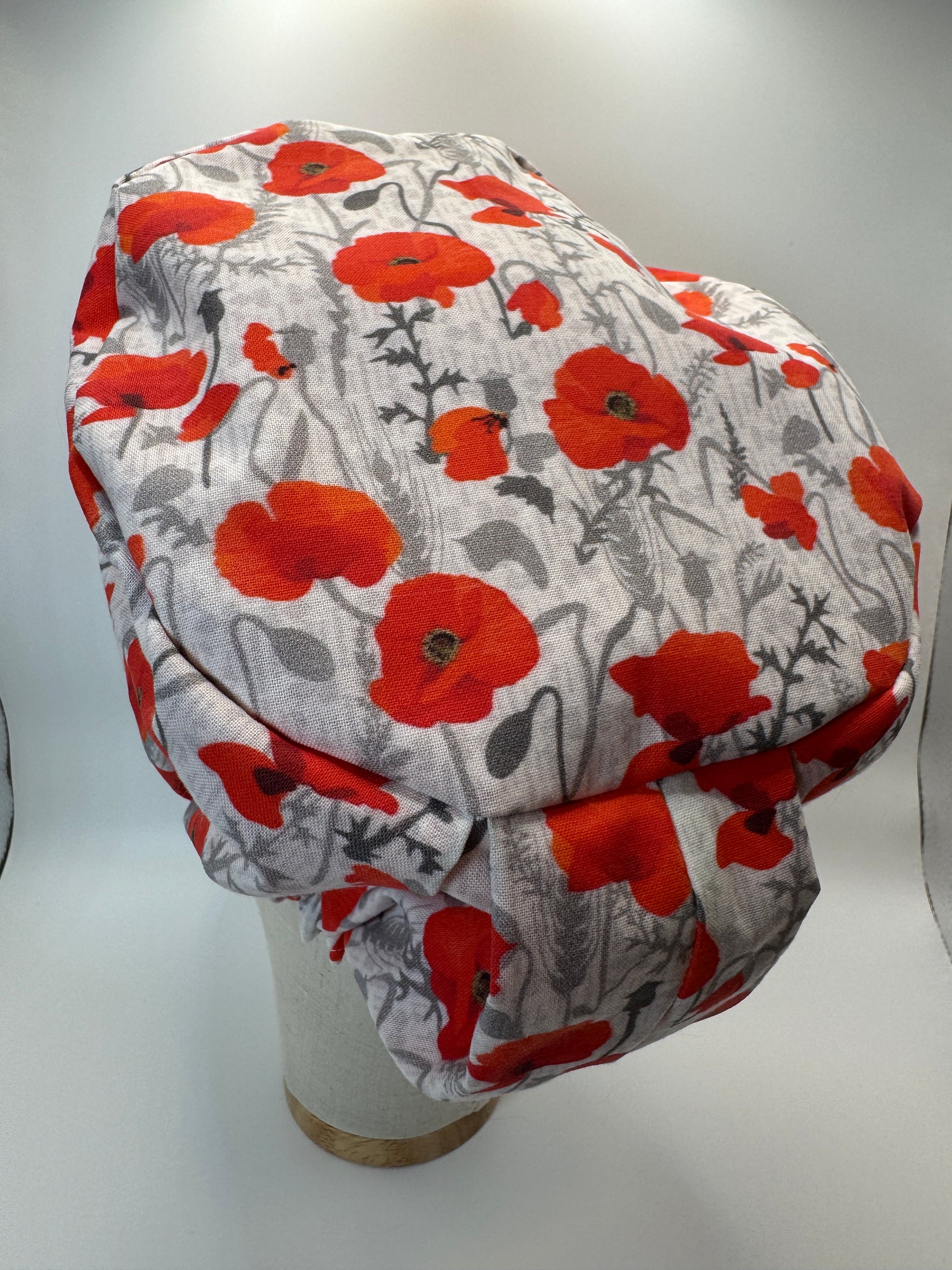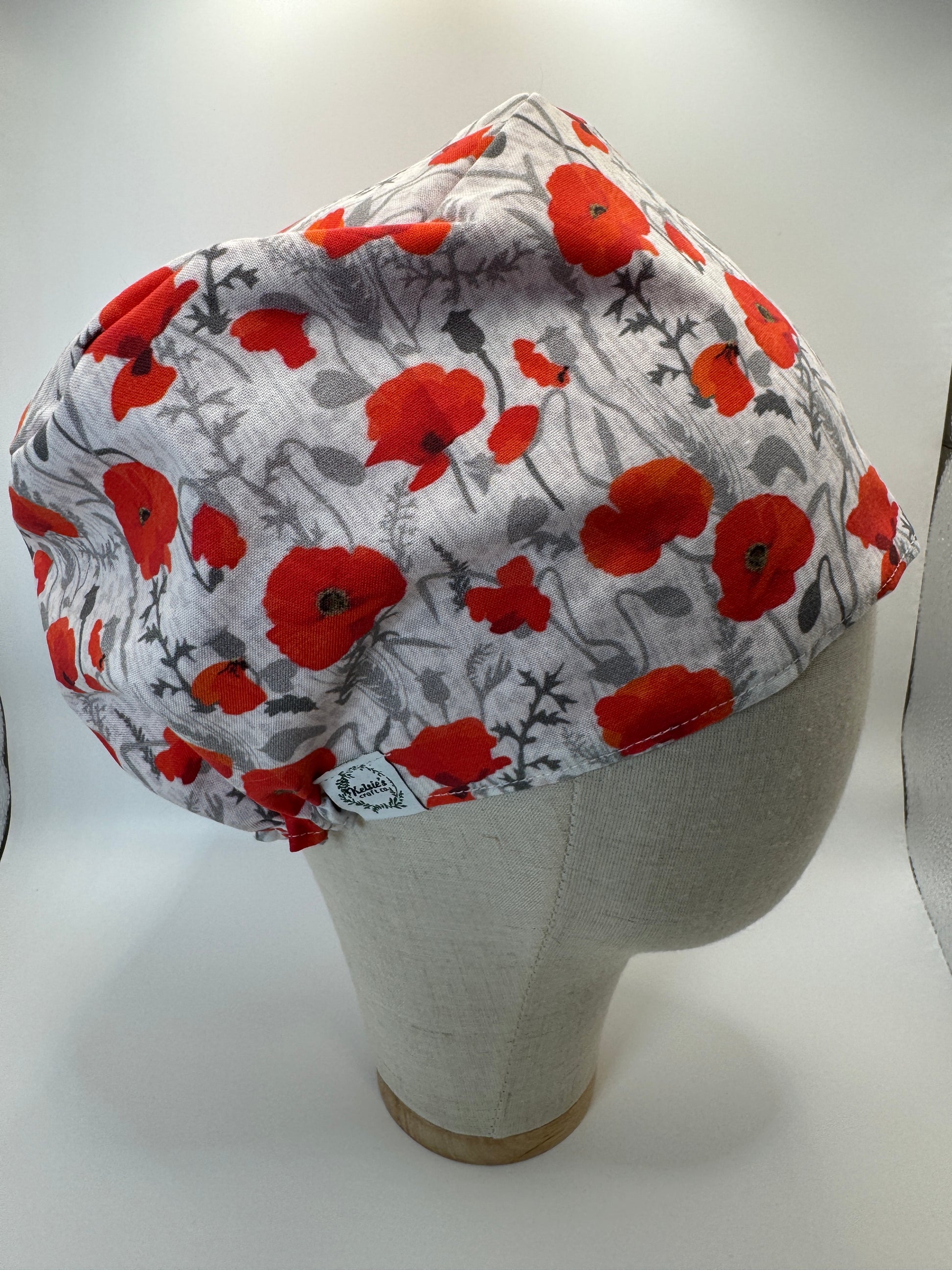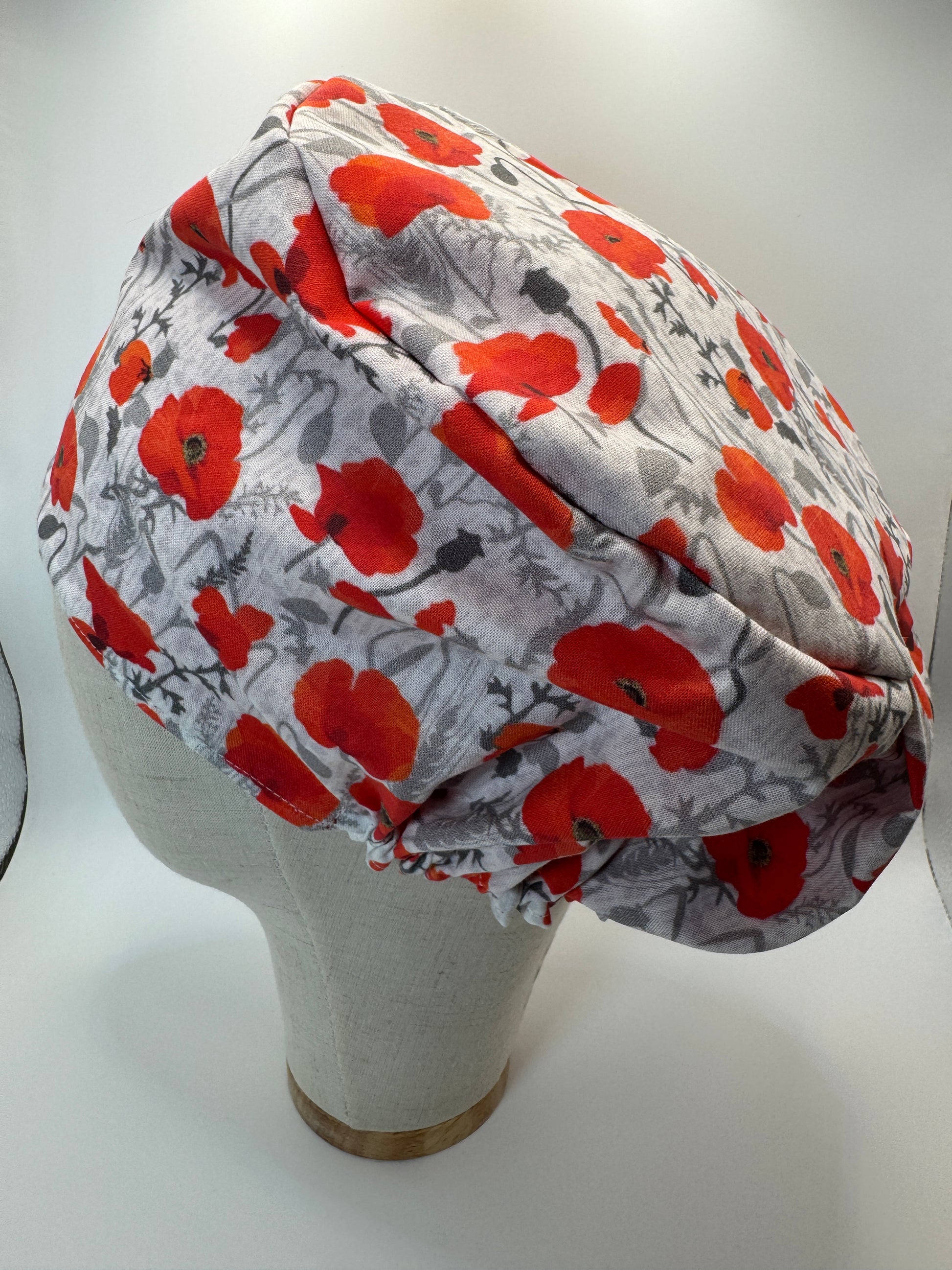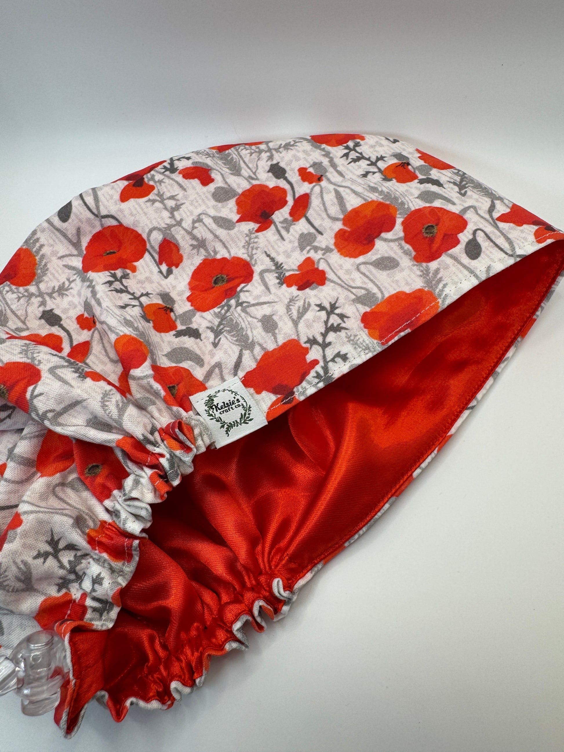 Poppies on White Scrub Cap - Satin Lining Available - Multiple Styles