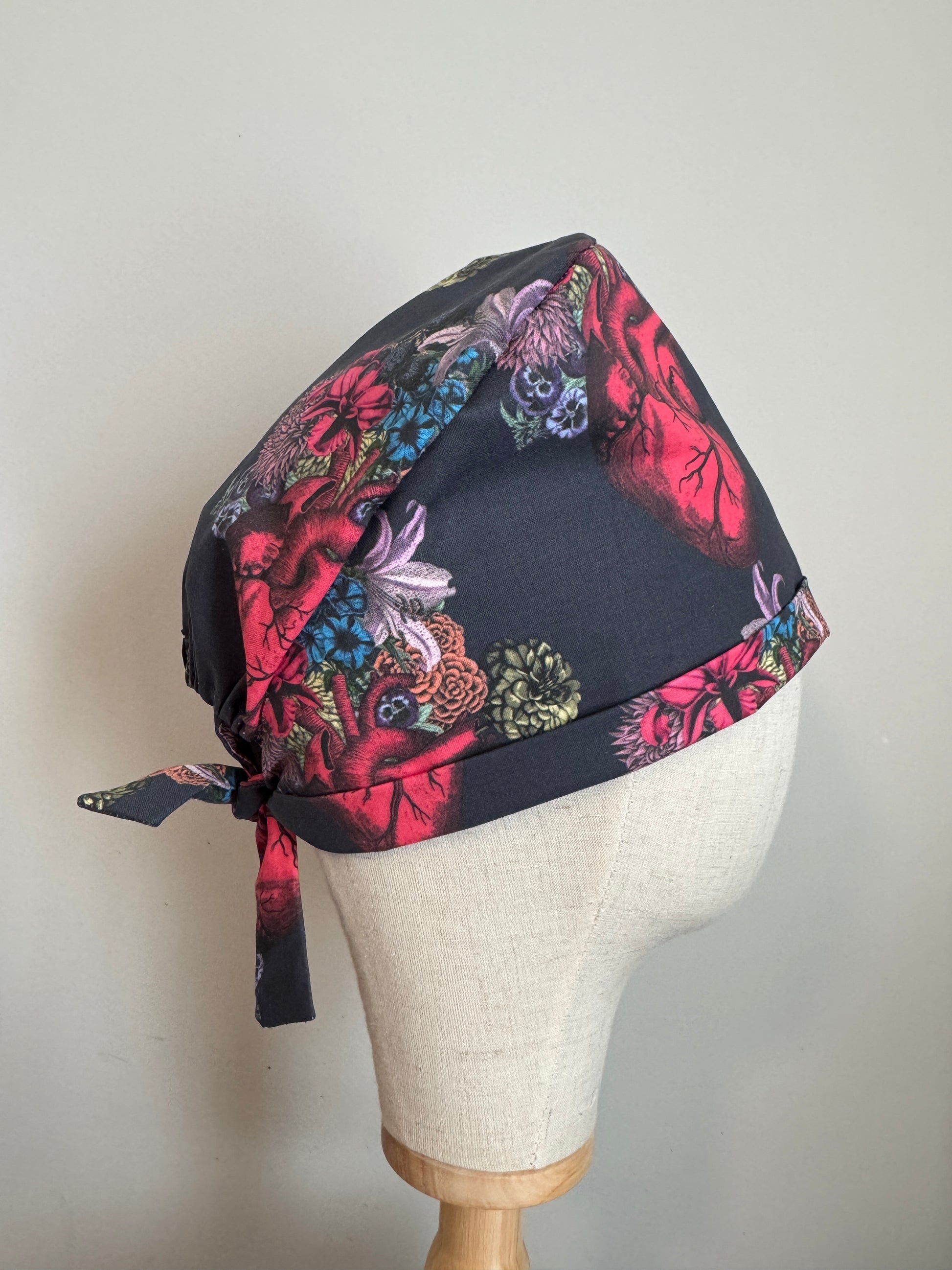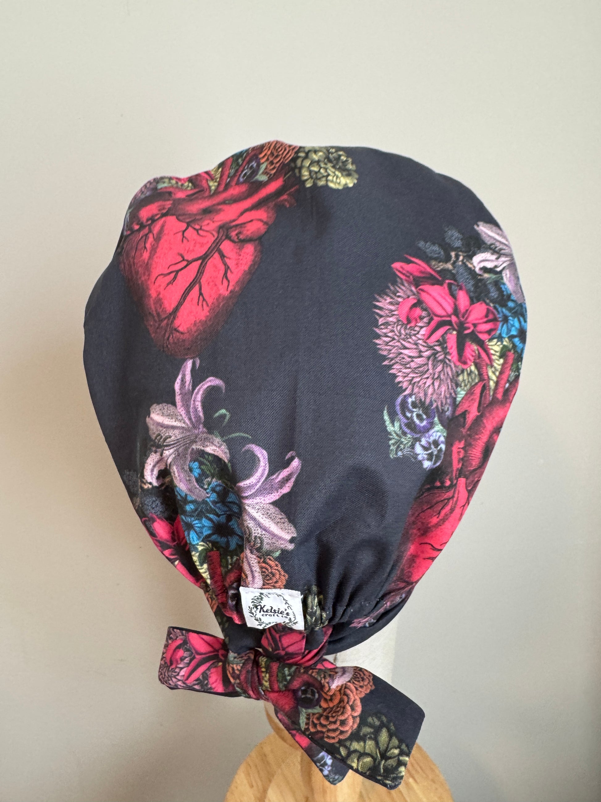 Anatomical Hearts with Floral Scrub Cap - Satin Lining Available - Multiple Styles