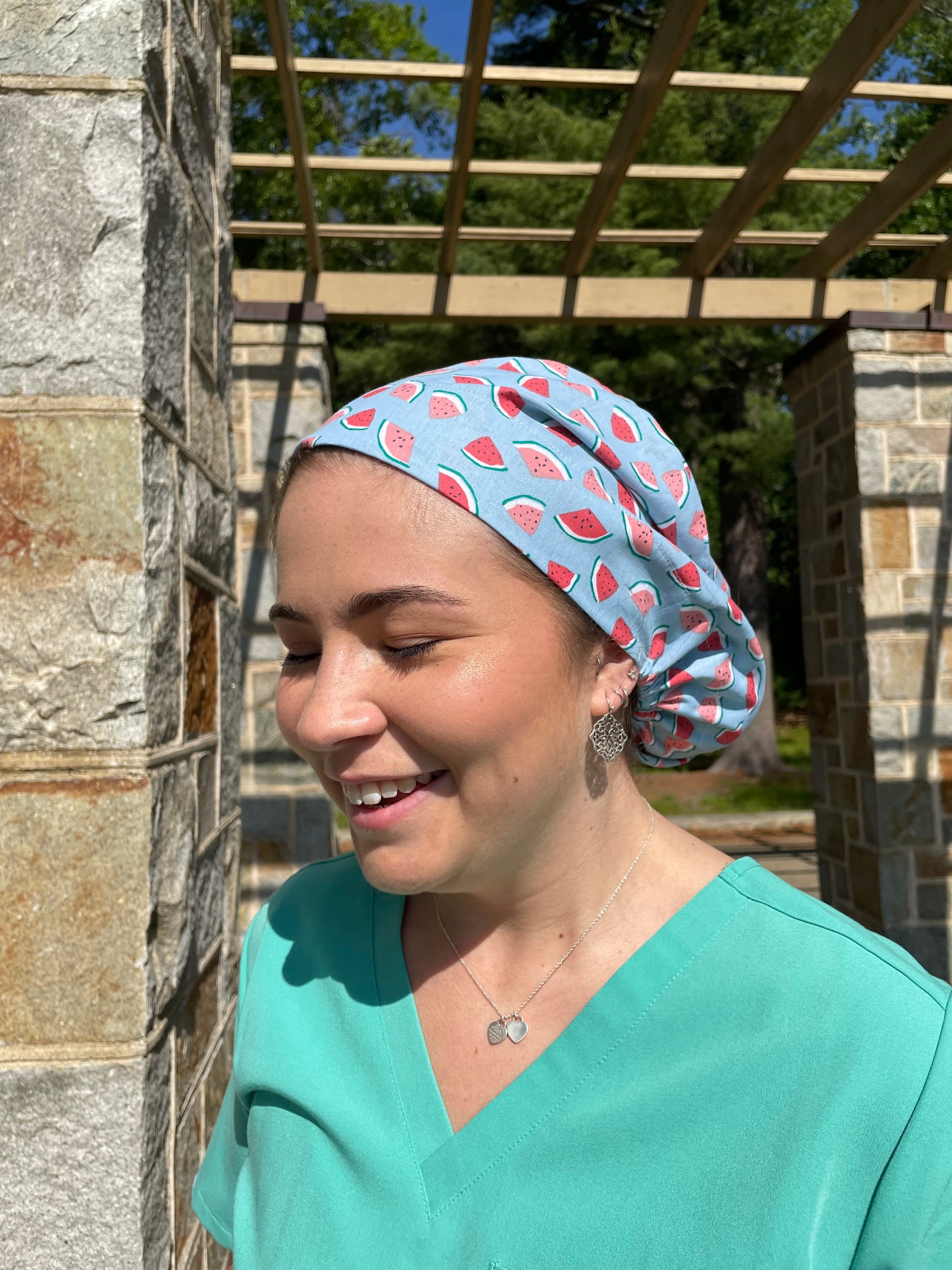 Mini Watermelon on Blue Scrub Cap - Multiple Styles