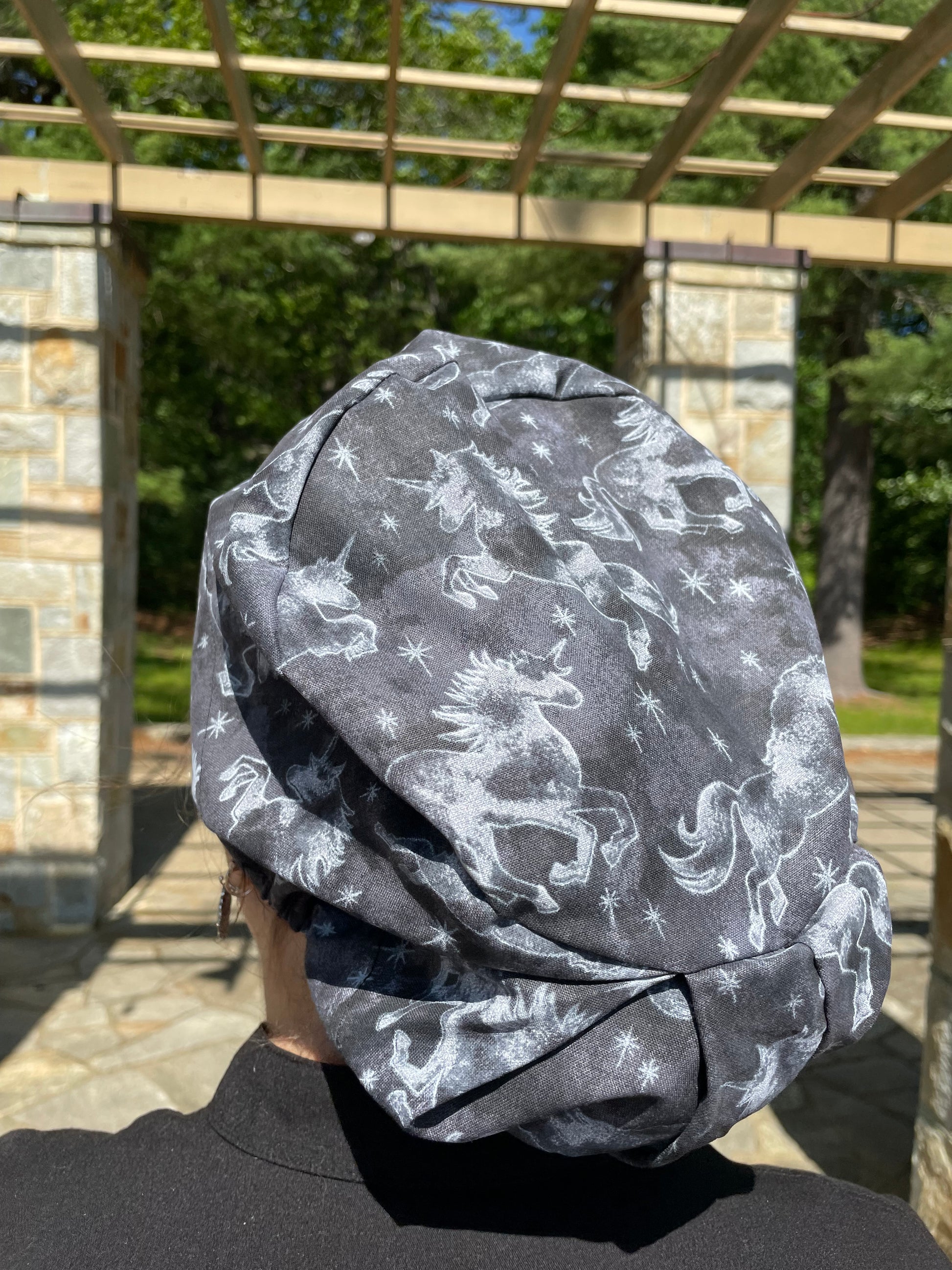 Unicorns on Black Scrub Cap - Satin Lining Available - Multiple Styles
