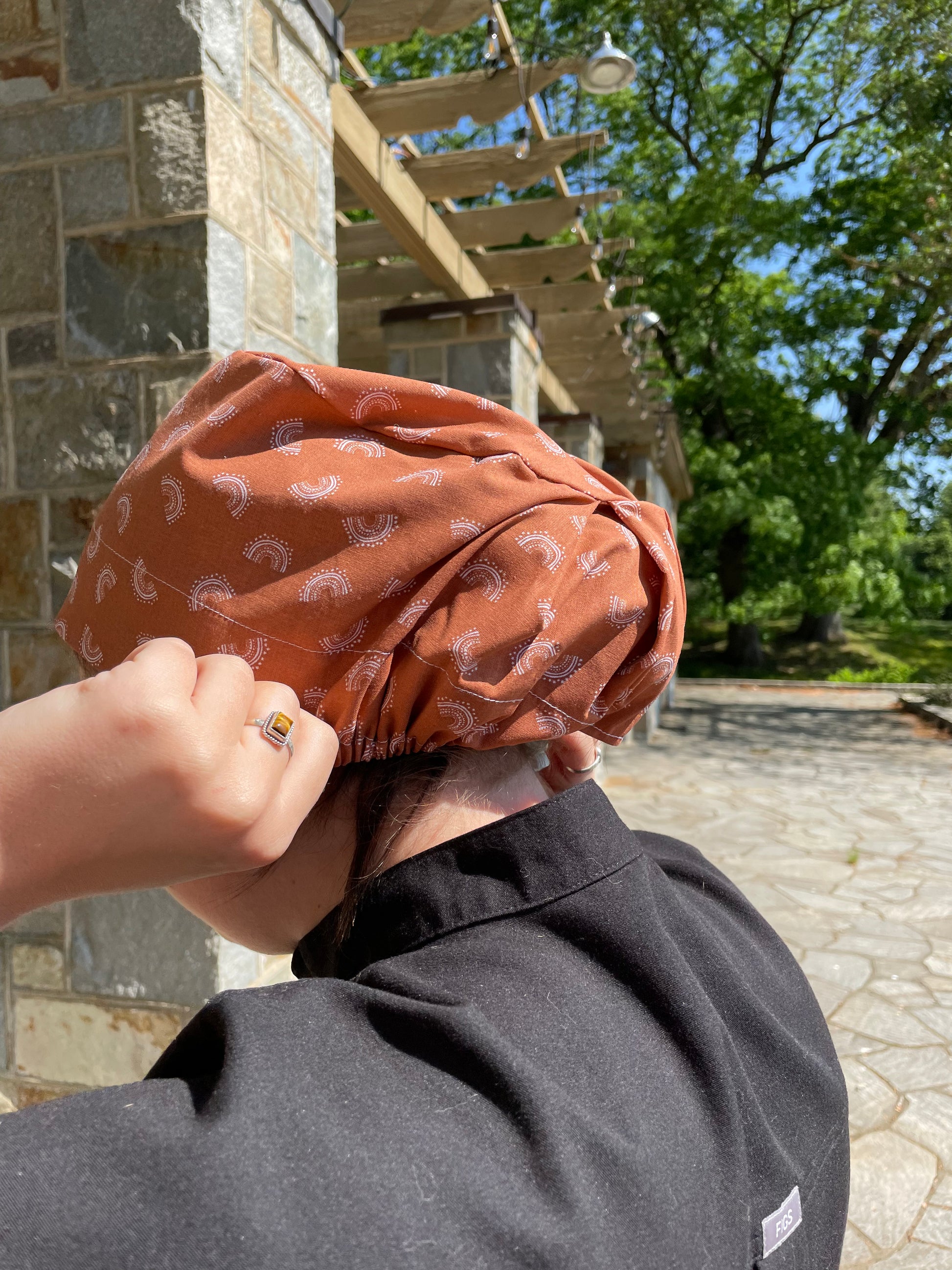 Satin Lining- Our signature cotton scrub caps just got a whole lot better, they now have a full satin lining to keep your hair happy and healthy! Choose form our Signature Color or a Coordinating Satin Lining color chosen to complement the colors in the hat, if you would like a specific color please send us a message! Coordinating color is subject to change and could be our signature color*