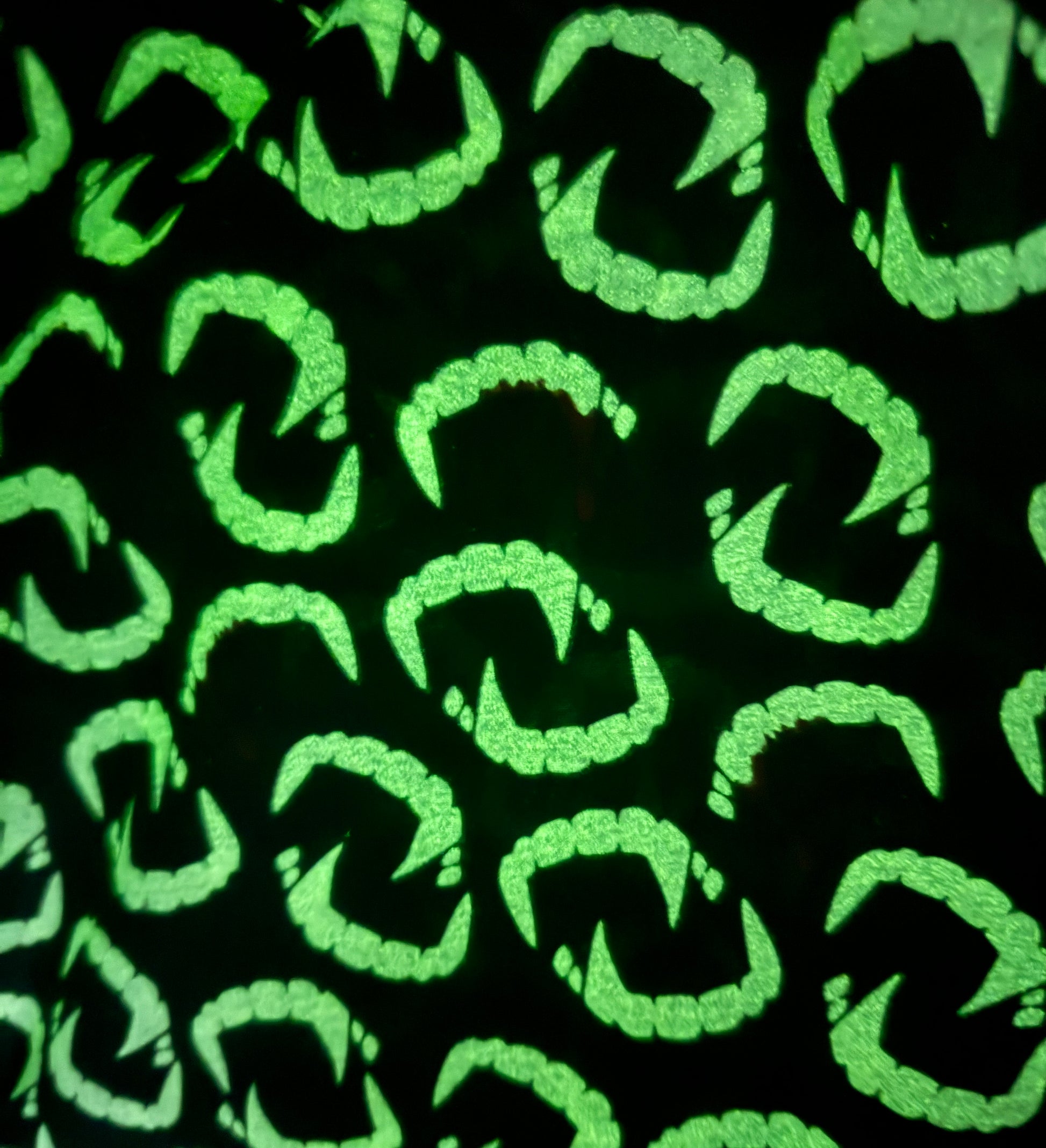 Please notice that the glow in the dark fabric is pictured in a completely dark environment and photos may vary according to the screen your are purchasing on, ie: the brightness.