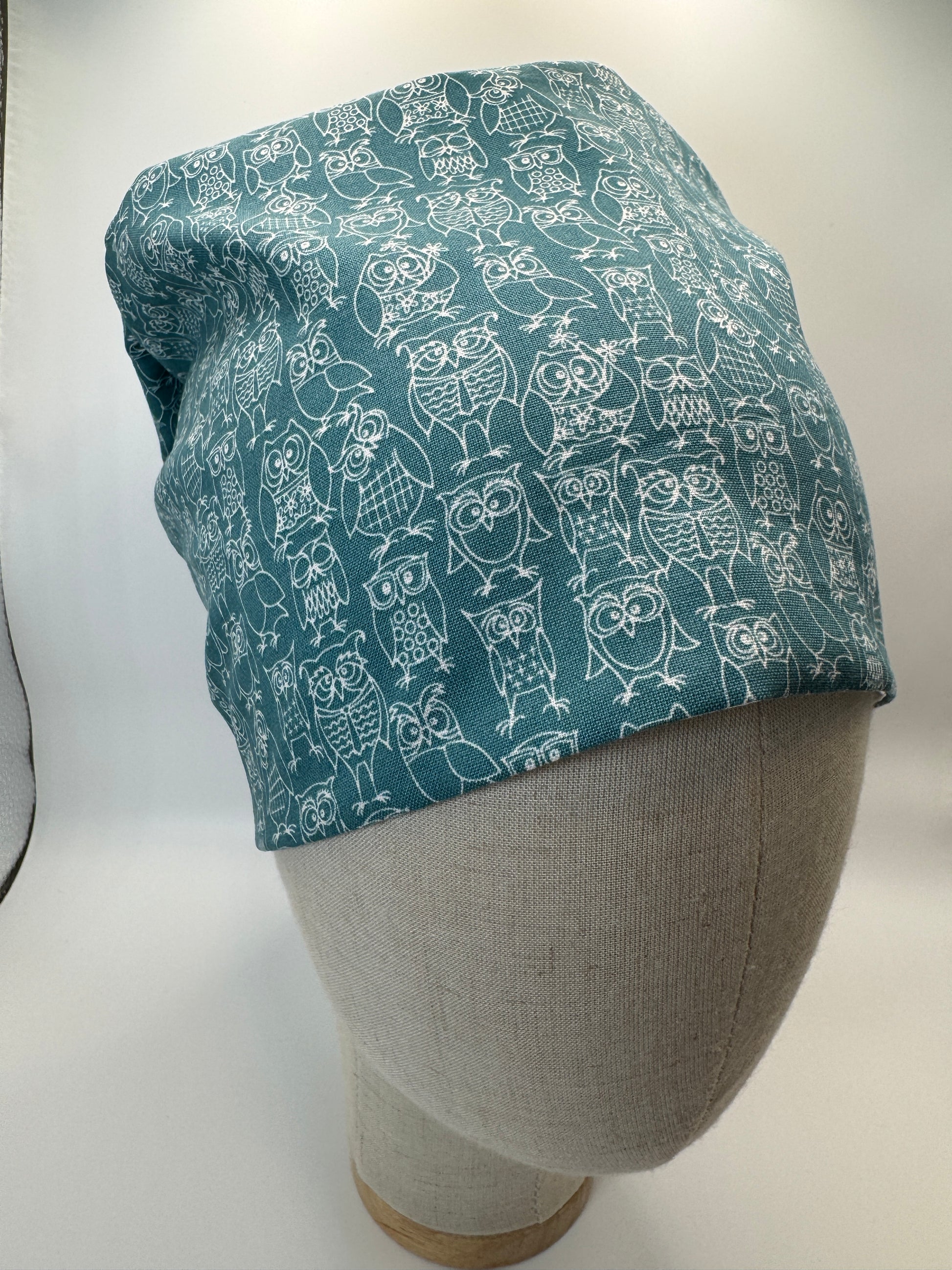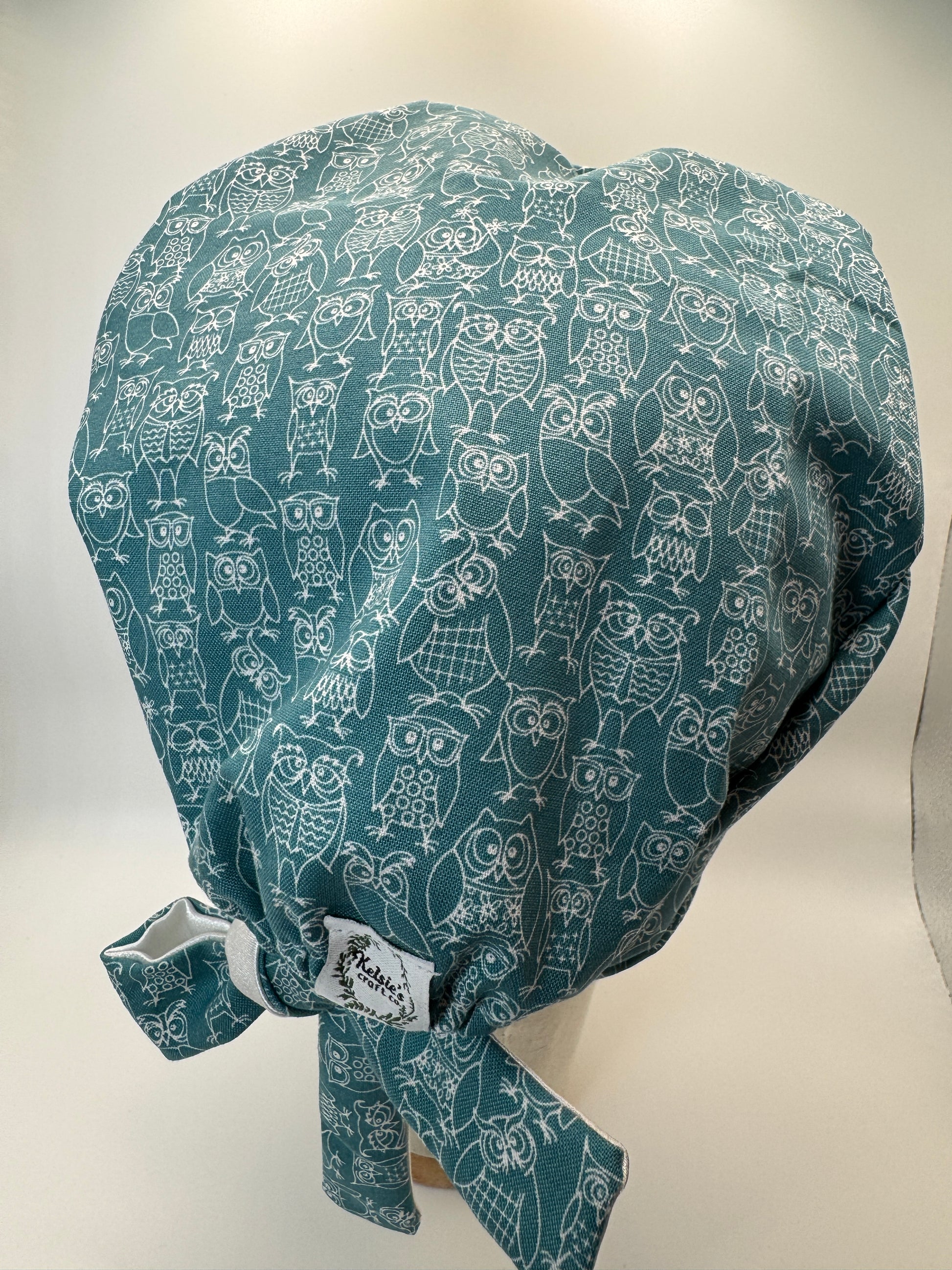 Owls on Teal Scrub Cap - Satin Lining Available - Multiple Styles