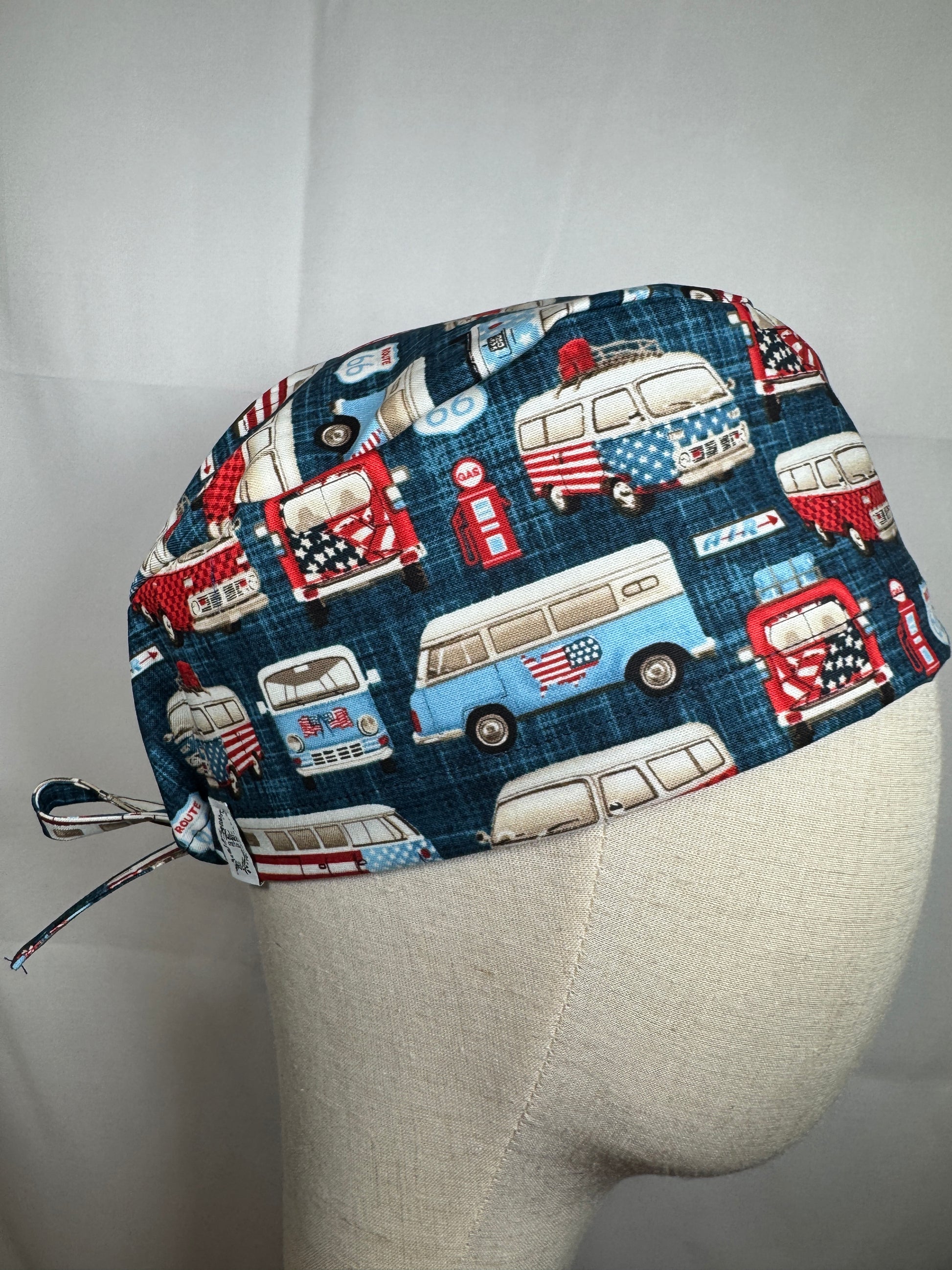 Patriotic Vintage Vans Scrub Cap - Satin Lining Available - Multiple Styles