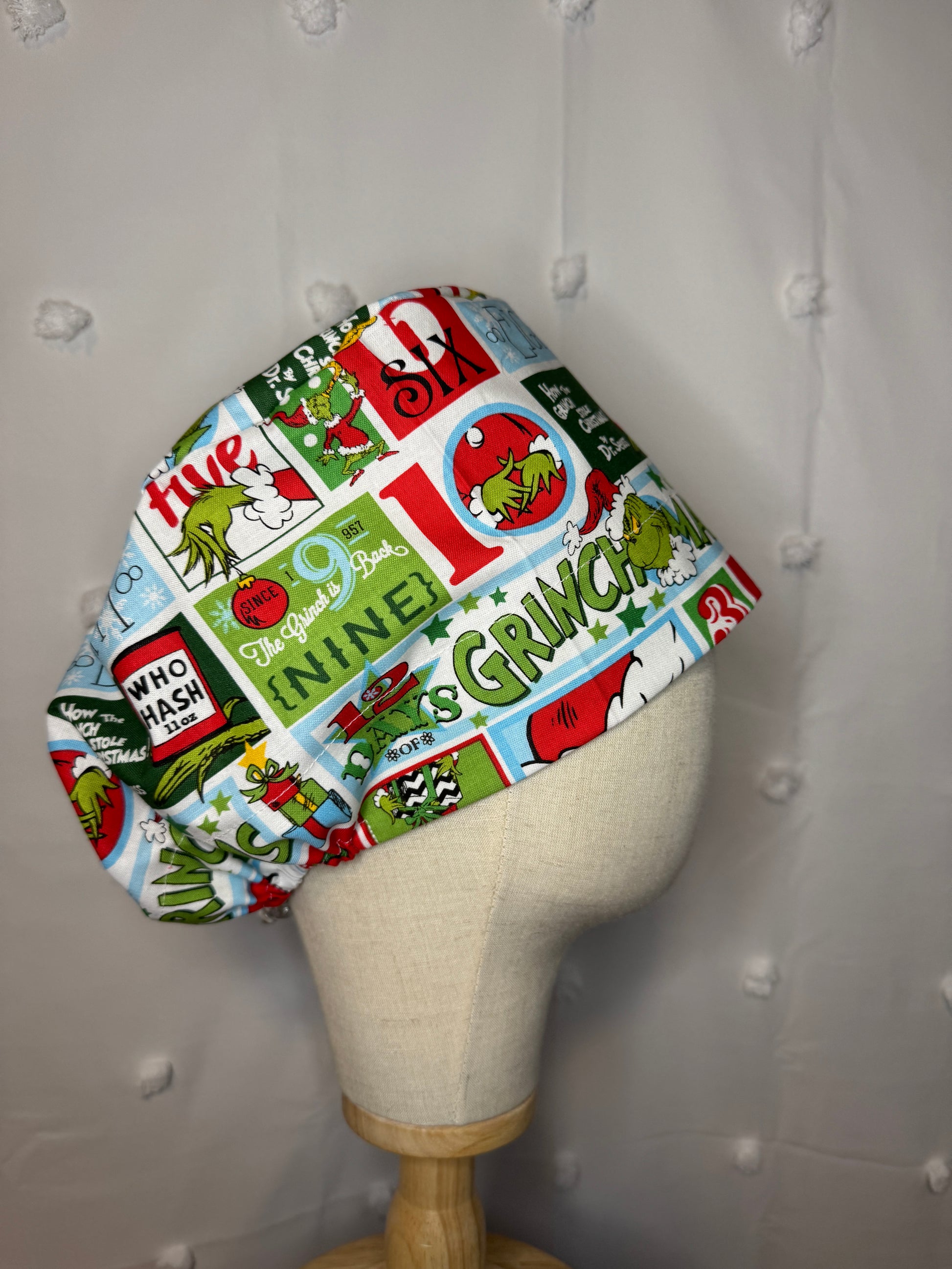 Scrub Cap in 12 Days of Grinchmas Fabric - Multiple Styles
