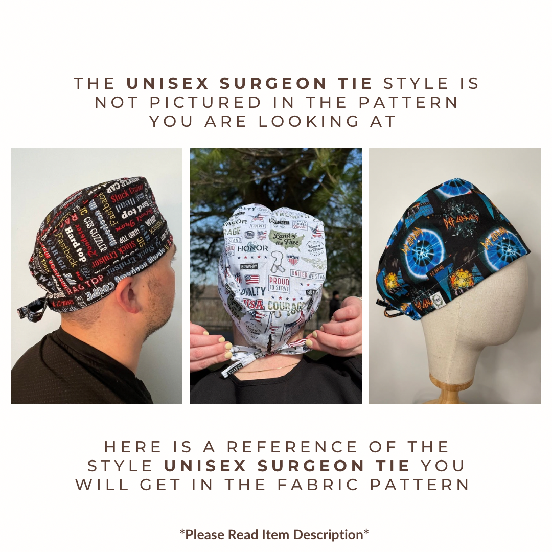 This unisex scrub cap is perfect for anyone looking for a go to cap! This cap is designed with a wide seem which can be folded without compromising the cap style and ties that adjust for maximum comfort and fit. This cap can cover short hair or even a low bun.